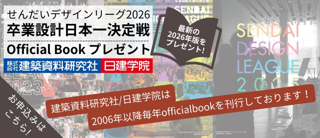 「せんだいデザインリーグ卒業設計日本一決定戦」は、全国の建築デザインや、都市計画などを学ぶ学生の卒業設計作品を仙台の地に集め、審査によって「日本一」を決める大会です。第一回開催となる2003年以降、世界的に有名なせんだいメディアテークを使用しながら、様々な分野で活躍をされている著名な建築家の方々や建築の枠を越えた分野の専門家をお呼びし、日本で初めての全国規模の卒業設計展へと発展をして参りました。