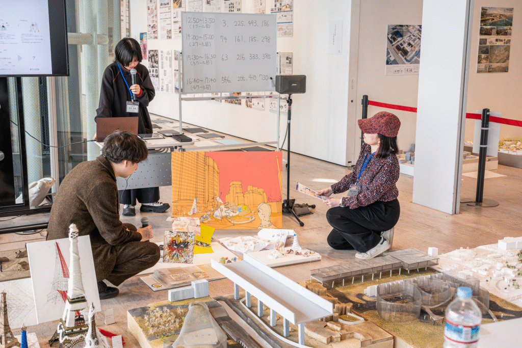 出展者に対して、作品のエスキスを⾏います。作品に込めた想いを公開審査以外の場で講評者や他の出展者に向けて発信することで、出展者のための交流の場をつくることを目的としています。